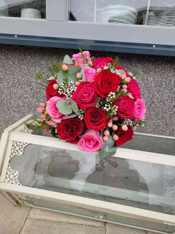 Buchet Nasa, Trandafiri, Waxflower, Hipericum, Eucalipt